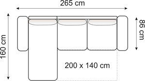 Dimensions: 265 cm (L) x 160 cm (W) x 86 cm (H)