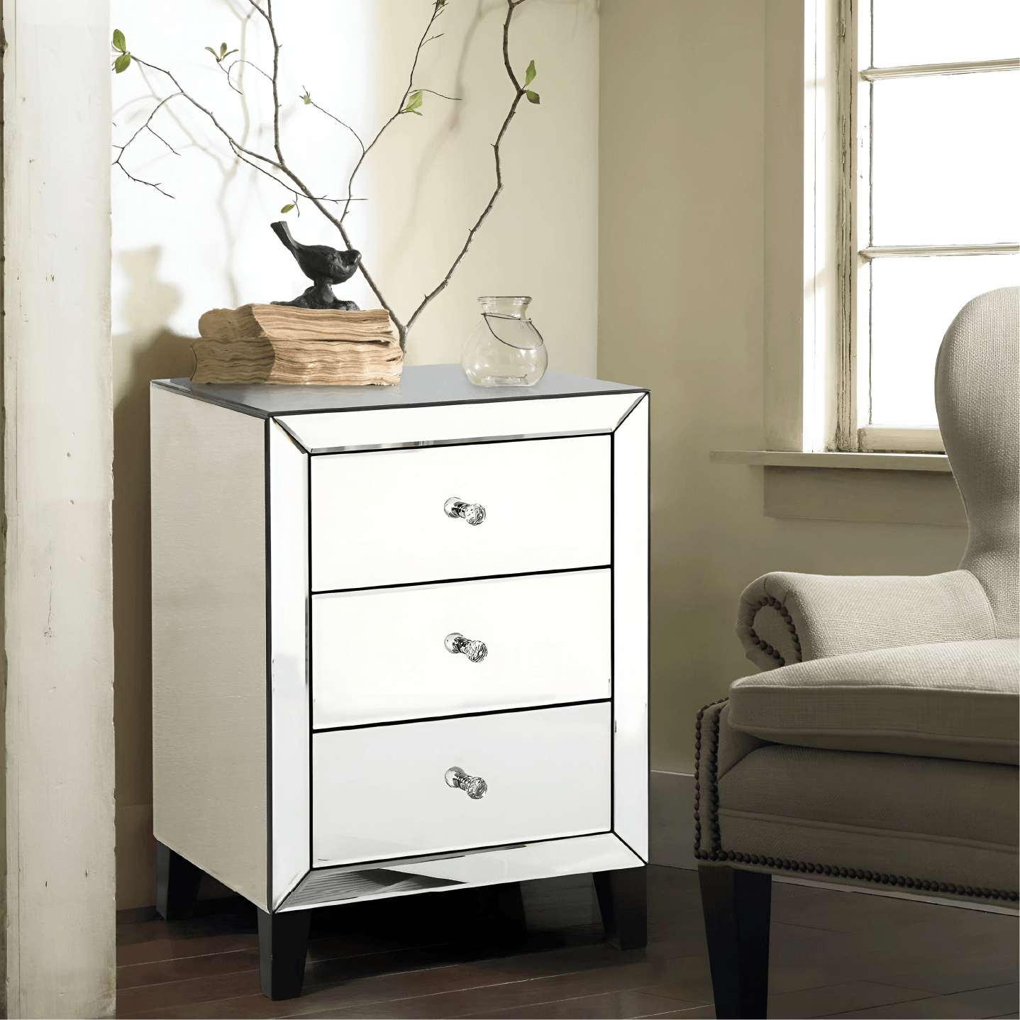 Augustina Nightstand 3 Drawer Mirrored Cabinet