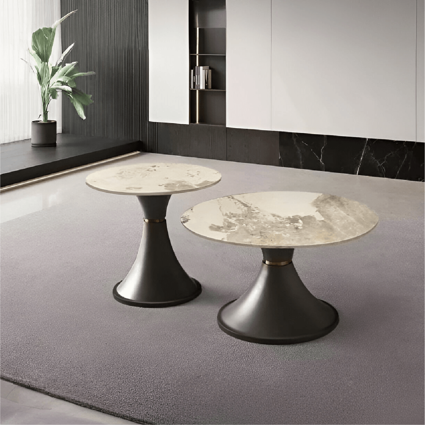 Introducing the Aura Coffee Table: where sophistication meets serenity. Available in stylish grey and cream options, its marble top exudes luxury while abstract, cool curved legs add a touch of modernity. Placing the Aura Coffee Table in any room instantly brings a certain aura, elevating your space with its unique blend of elegance and contemporary charm.