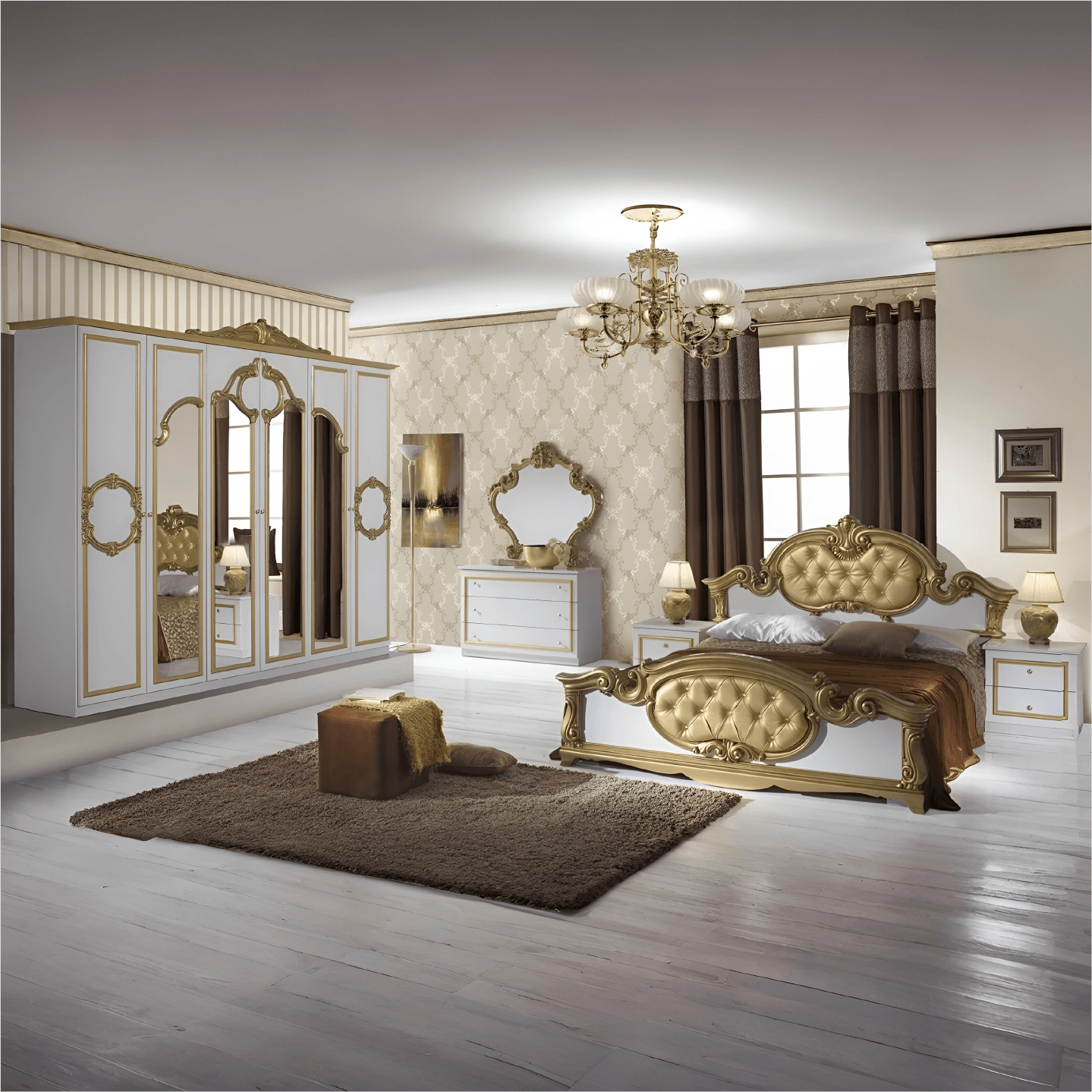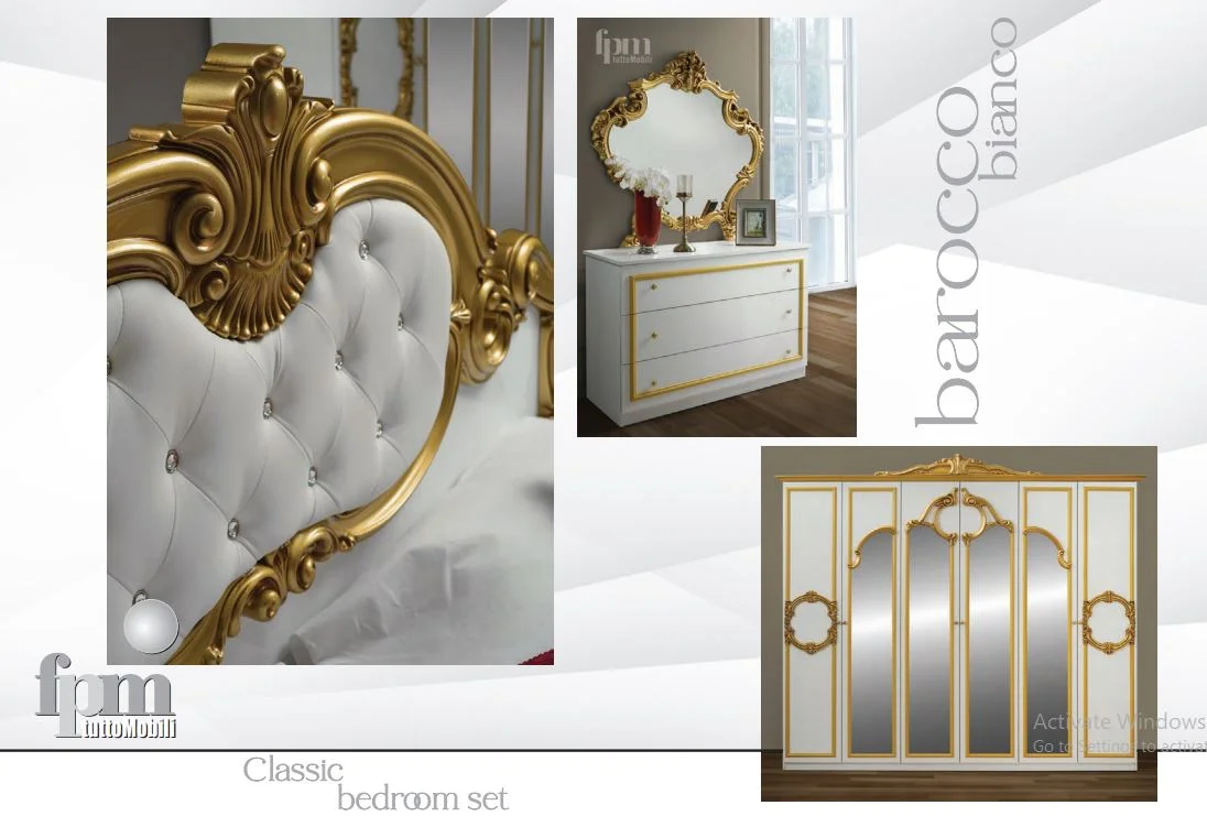 Barocco Italian High Gloss 6 Doors bedroom Set (White/Black-Gold)
