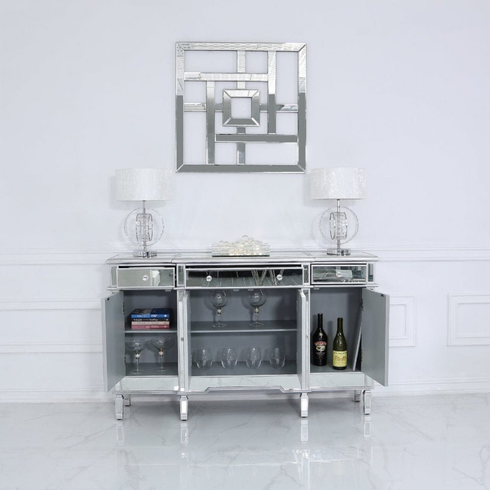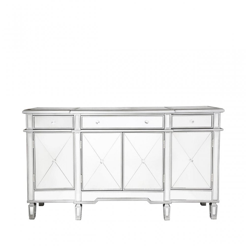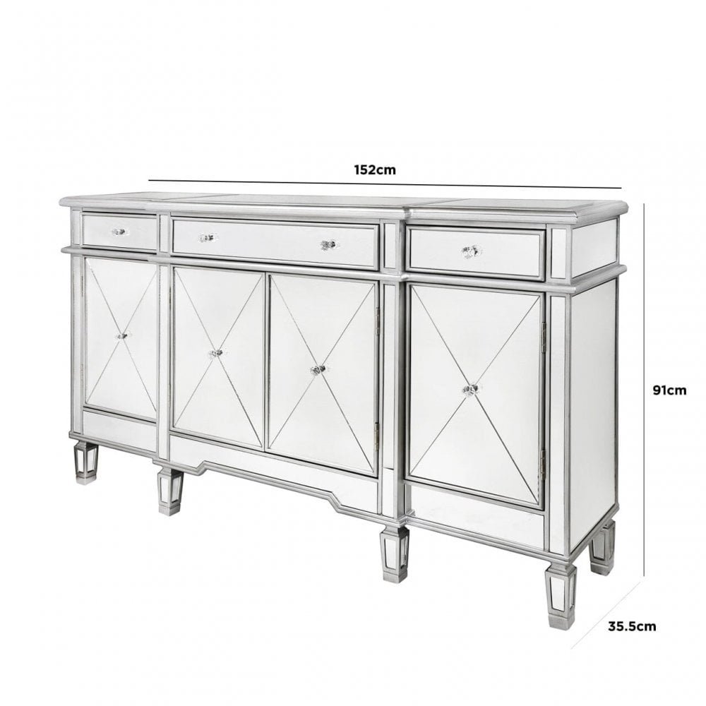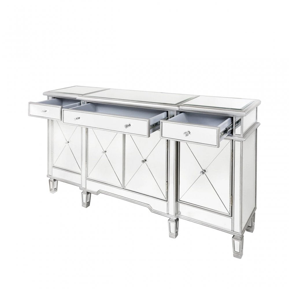 Beaumont Silver 3 Drawer 4 Door Mirrored Sideboard Mirrored Cabinet