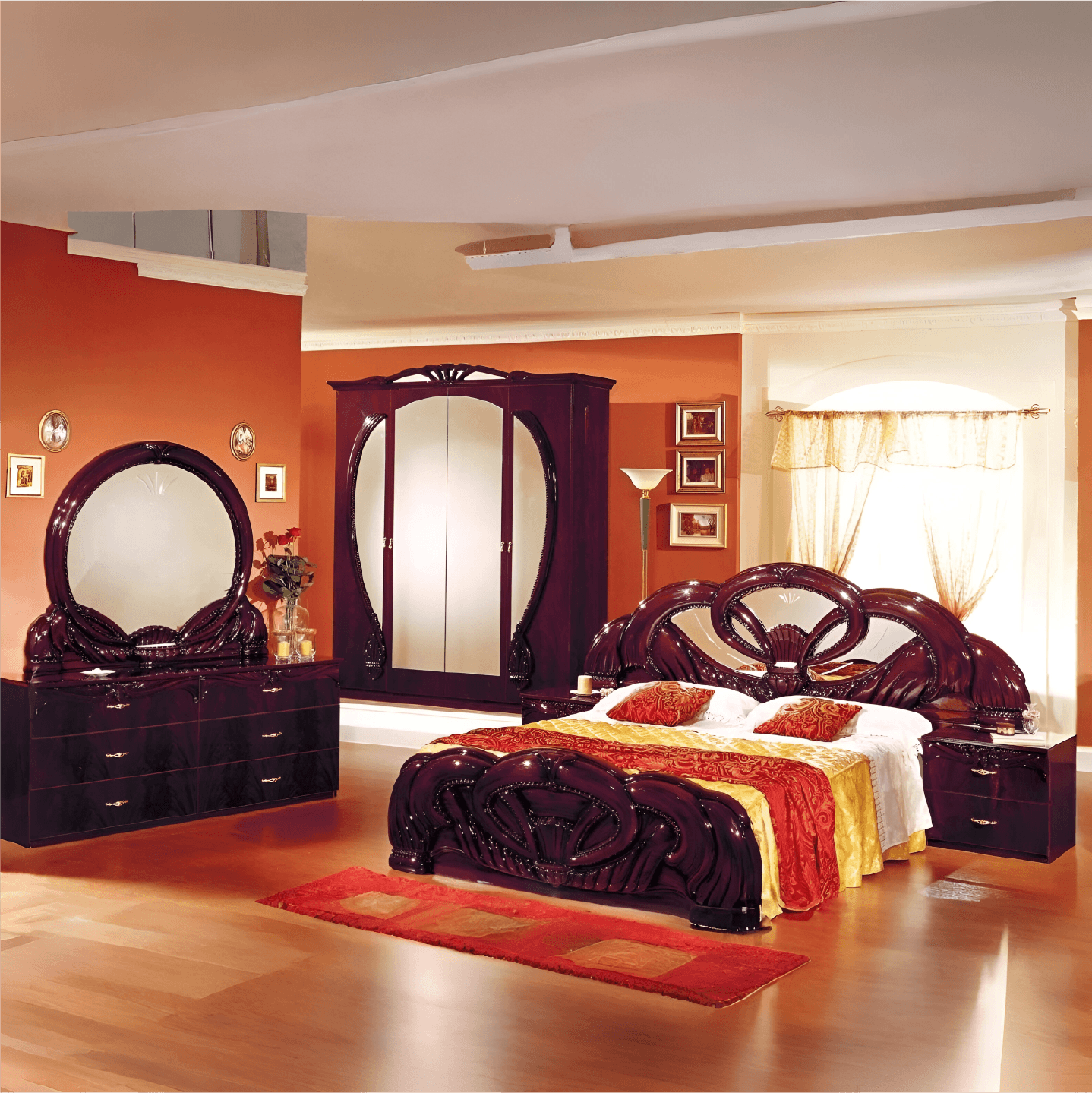 - Gaida Italian Bedroom White/Mahogany Bedroom Set (EU)