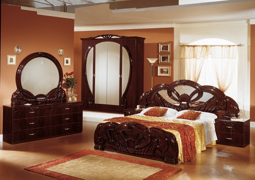 New Gaida Italian Bedroom Set in Mahogany and white Colors