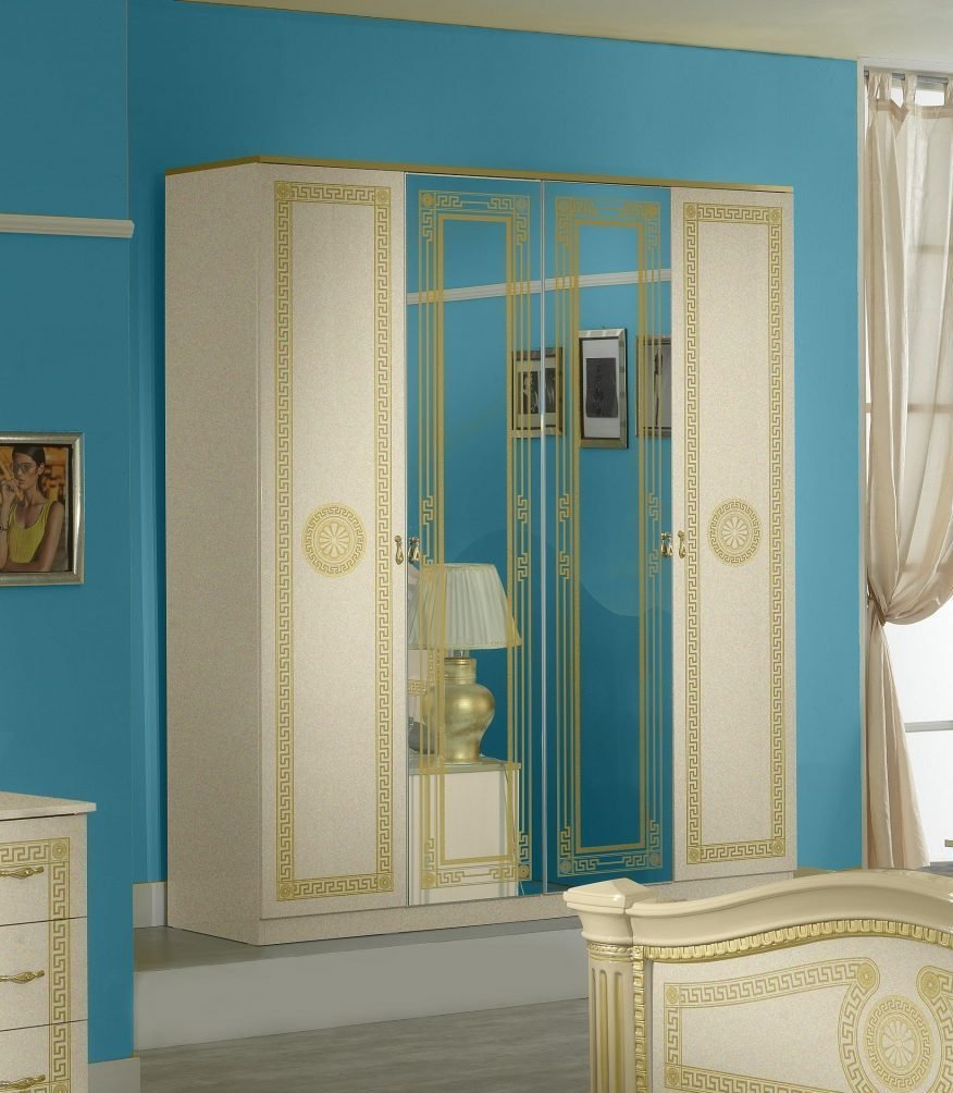 Ben Company New Serena Italian Beige – Gold 4 Doors Bedroom Set