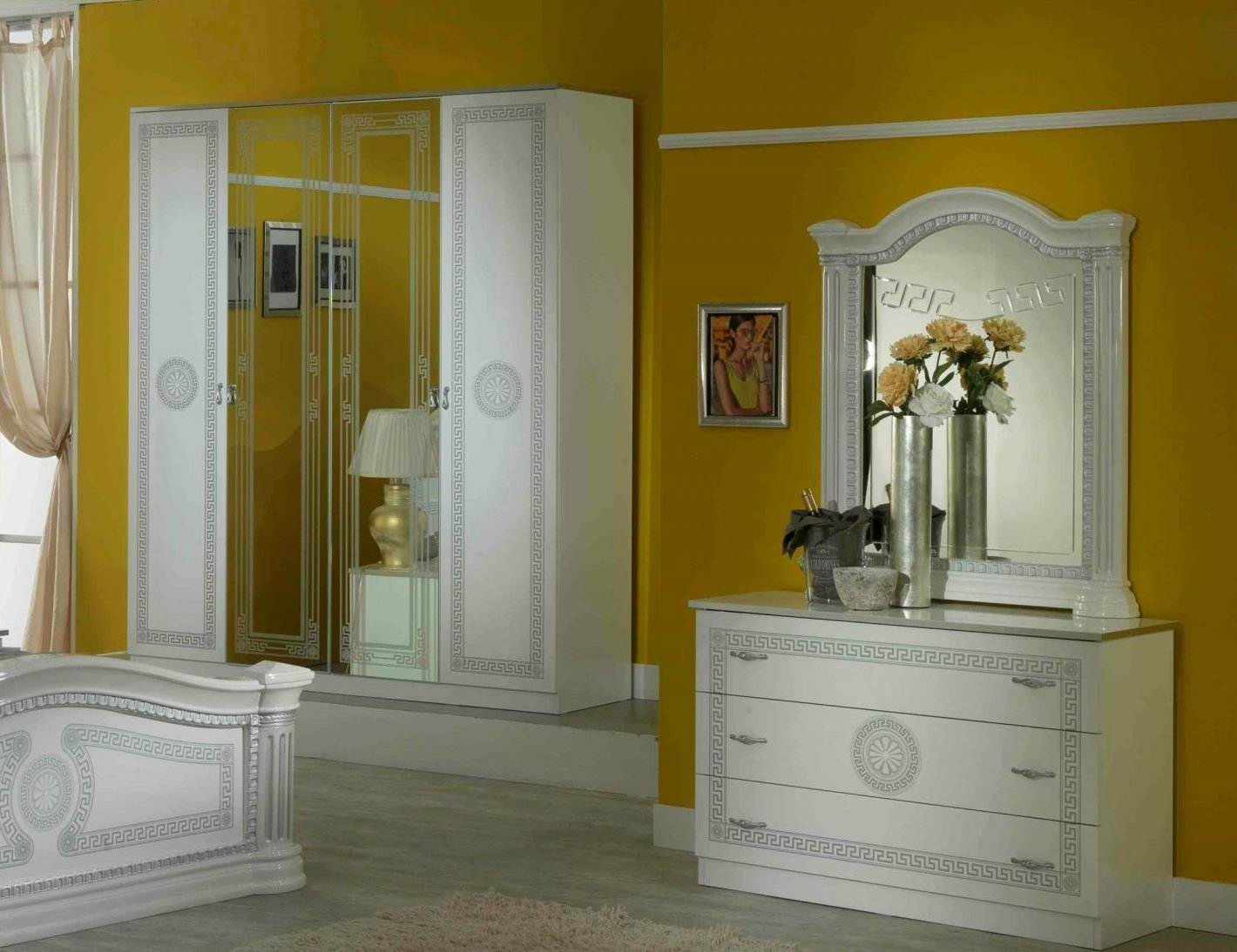 Ben Company New Serena Italian White and Silver 6 Doors Bedroom Set