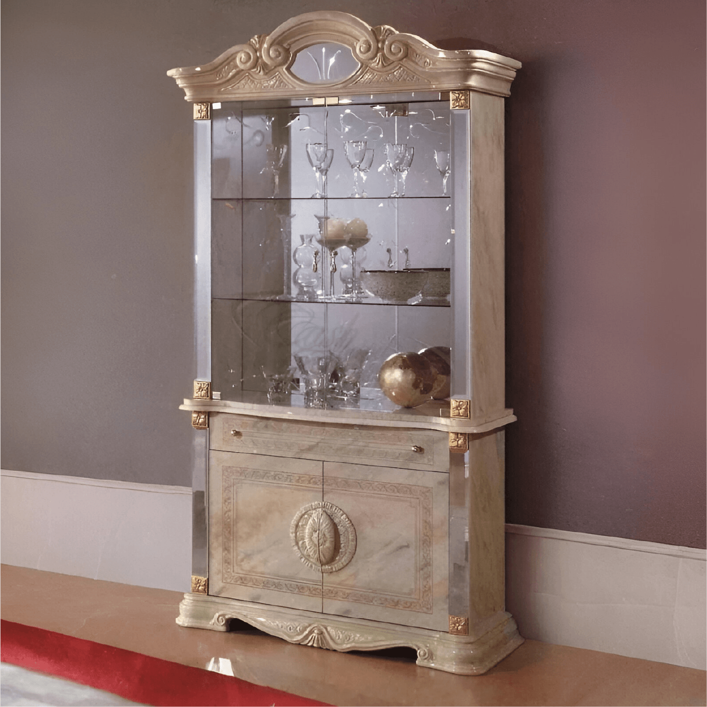 Betty 2 Door Display Unit in High Beige & Gold Finish with Mirrored Detailing