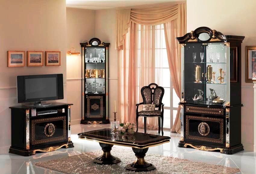 Betty Black and Gold Finish Italian Buffet 3 Drawer Ben Company