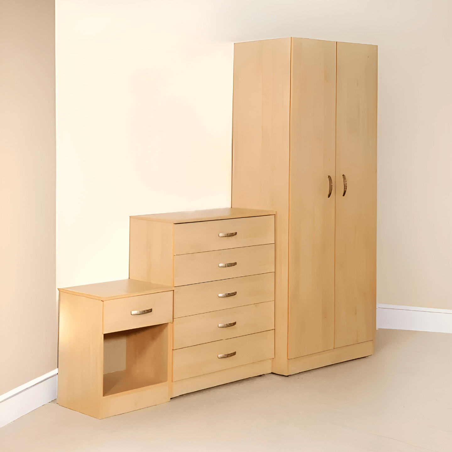 Budget 2 Door Wardrobe & 5 Drawer Chest Drawer and Bedside (Plain)