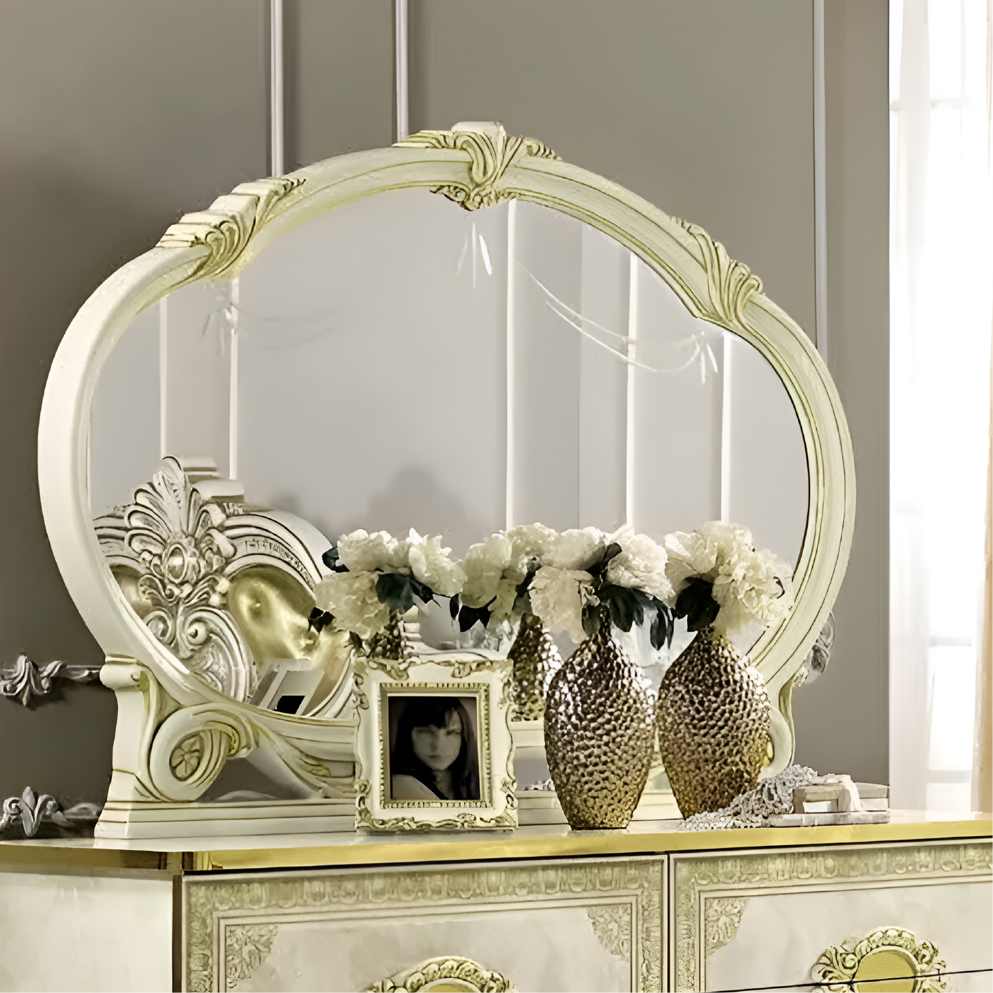 Luxury Italian Leonardo Ivory and gold Finish Large Mirror