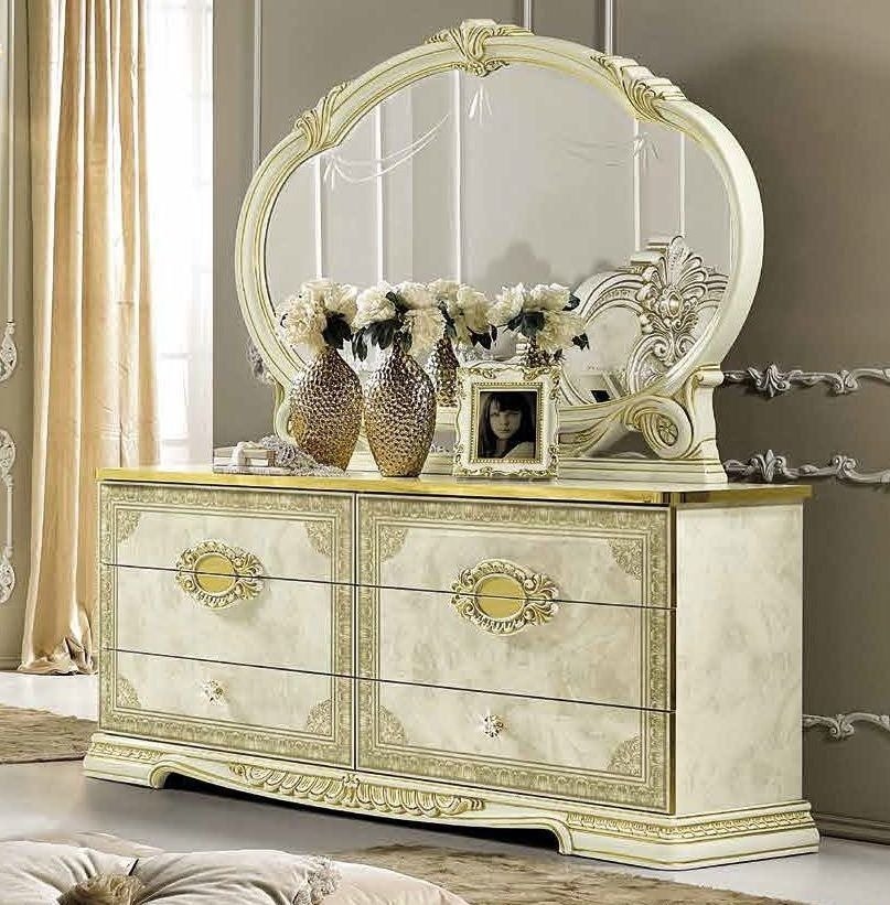 Leonardo 2 Door / 4 Drawer Buffet with Large Mirror in High Beige & Gold Finish