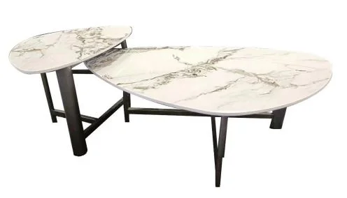 Embrace asymmetrical modernity with the Cascade Coffee Table set. Two seamlessly interlocking round tables, their shapes defy convention, adding a contemporary twist to your space. With a sleek white surface boasting a marble effect and anchored by bold black legs, these tables redefine elegance with their unique form. Let the Cascade Coffee Table set be the statement piece in your home, where asymmetry meets sophistication in a harmonious blend of style.