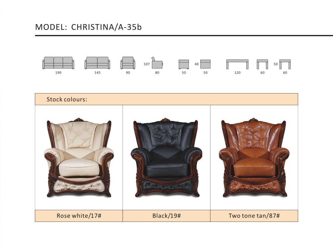 Our Christina Classic Italian ranges features solid wooden feet which add character & stylish design.