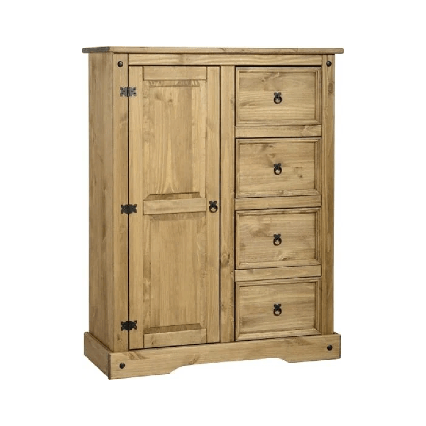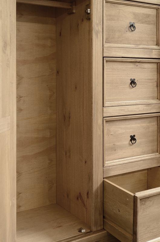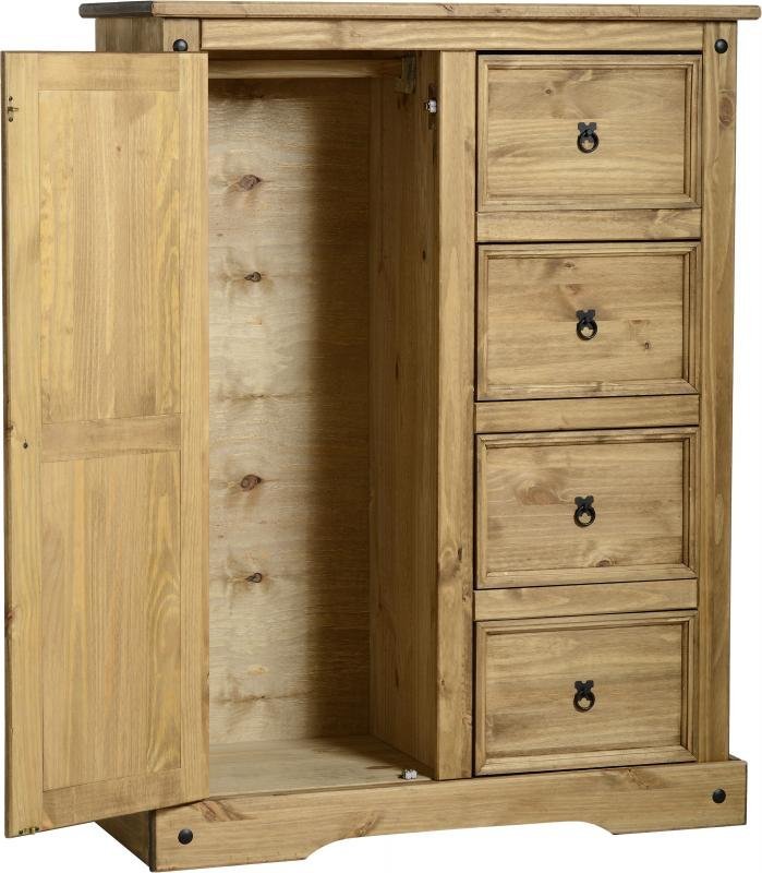 Corona 1 Door 4 Drawer Low Wardrobe in Distressed Waxed Pine
