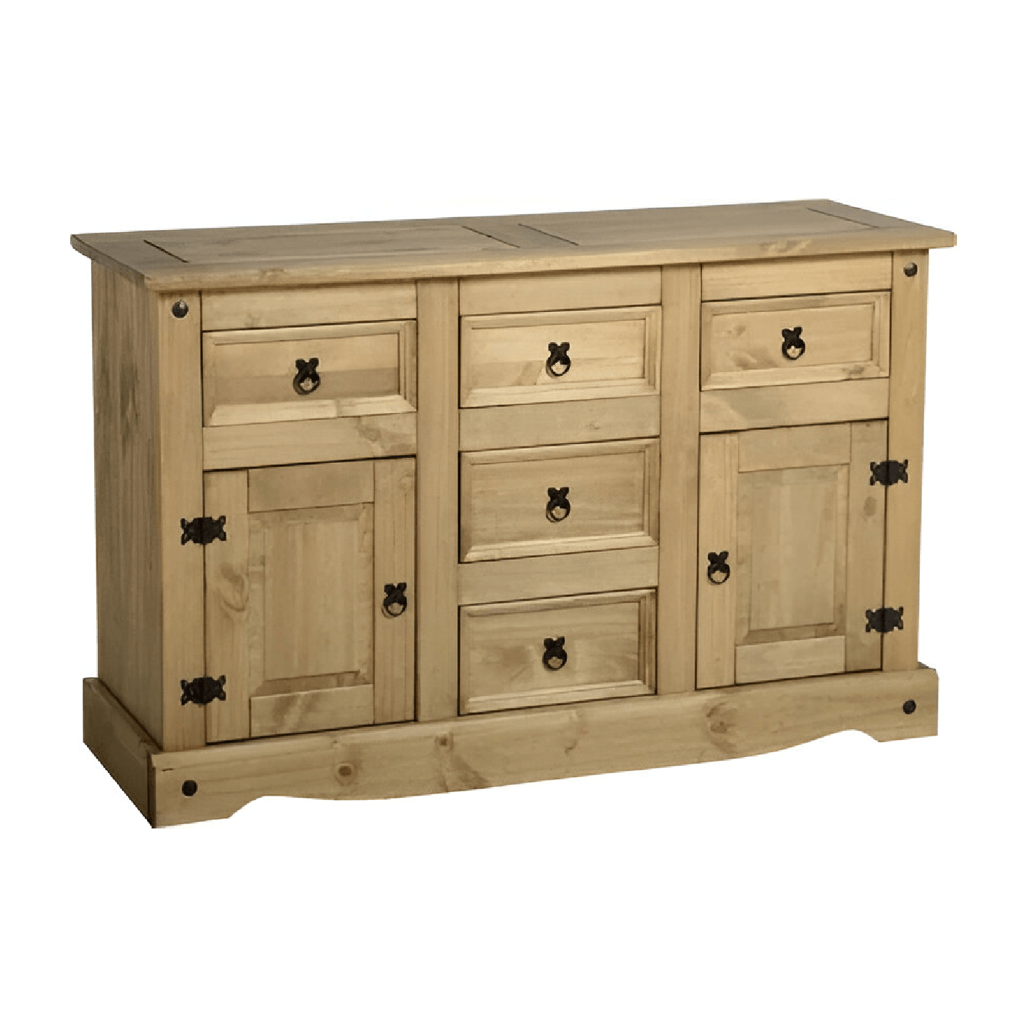 Corona 2 Door 5 Drawer Sideboard in Distressed Waxed Pine