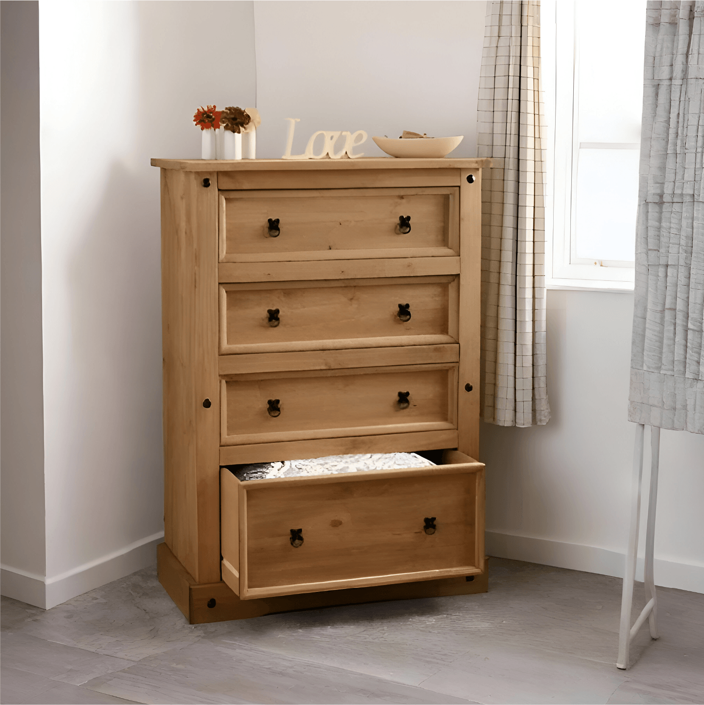 PINE, PLYWOOD BACK PANEL, PLYWOOD DRAWER BASE, METAL HANDLE, PINE DRAWER RUNNERS, METAL STUDS