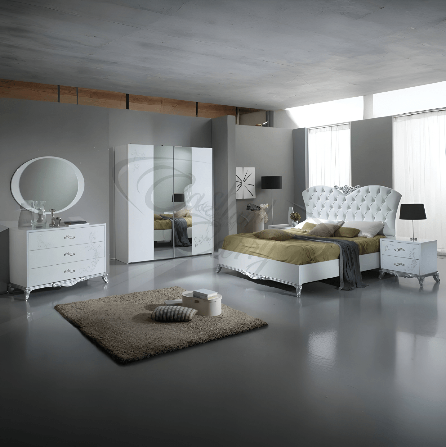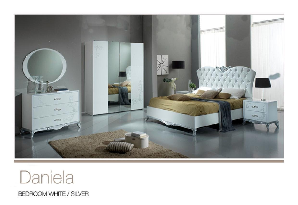 Danila White/Silver Italian Bedroom with Large 3 Doors Sliding Wardrobe Ben Company