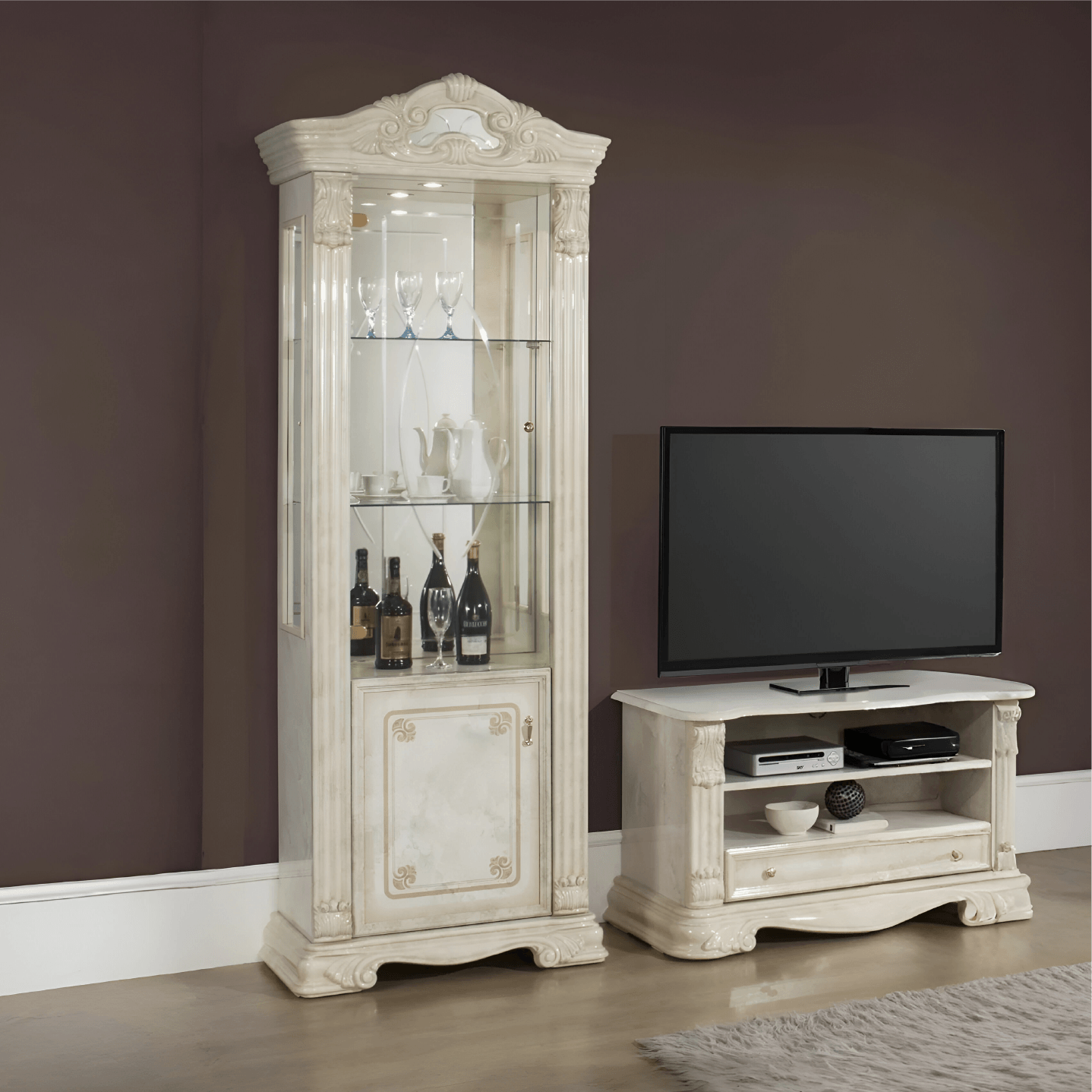 Add a perfect showcase for to your living room space. Elizabeth Italian 1 door Vitrine is perfect for ornaments, framed photos and books.