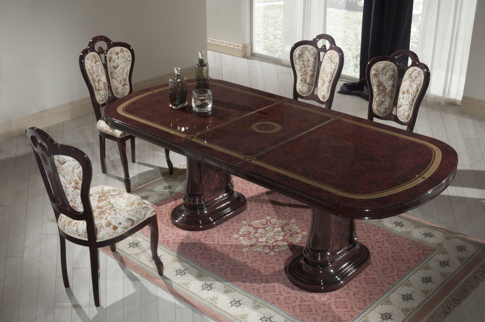 Gina Mahogany Italian Large Extending (Dima_Mobili) Dining Table with 6 Chairs