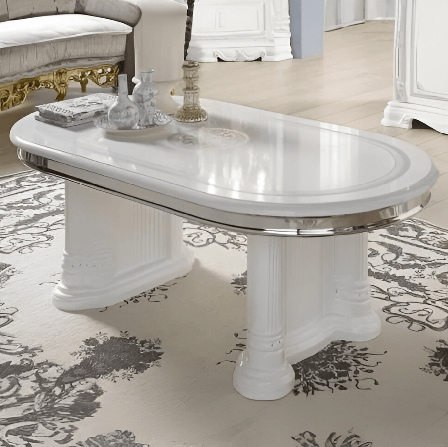 Greta Italian Coffee Table– High Gloss White and Silver Tuttomobili