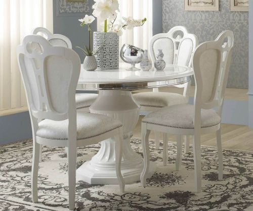 Greta White Finish Round Extension Dining Table with 4 Chairs Tuttomobili