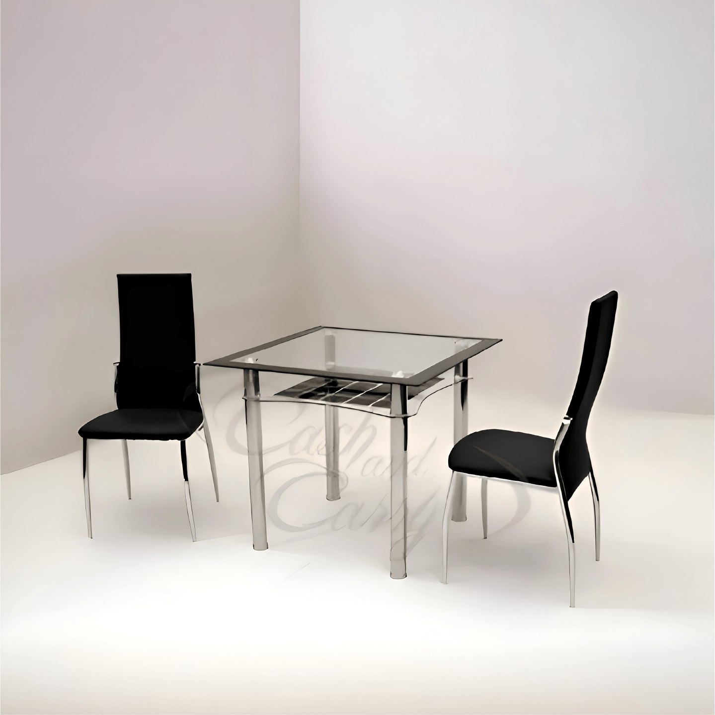 850W x 850D – 2 Lazio PU Chrome Chairs – Black, Cream