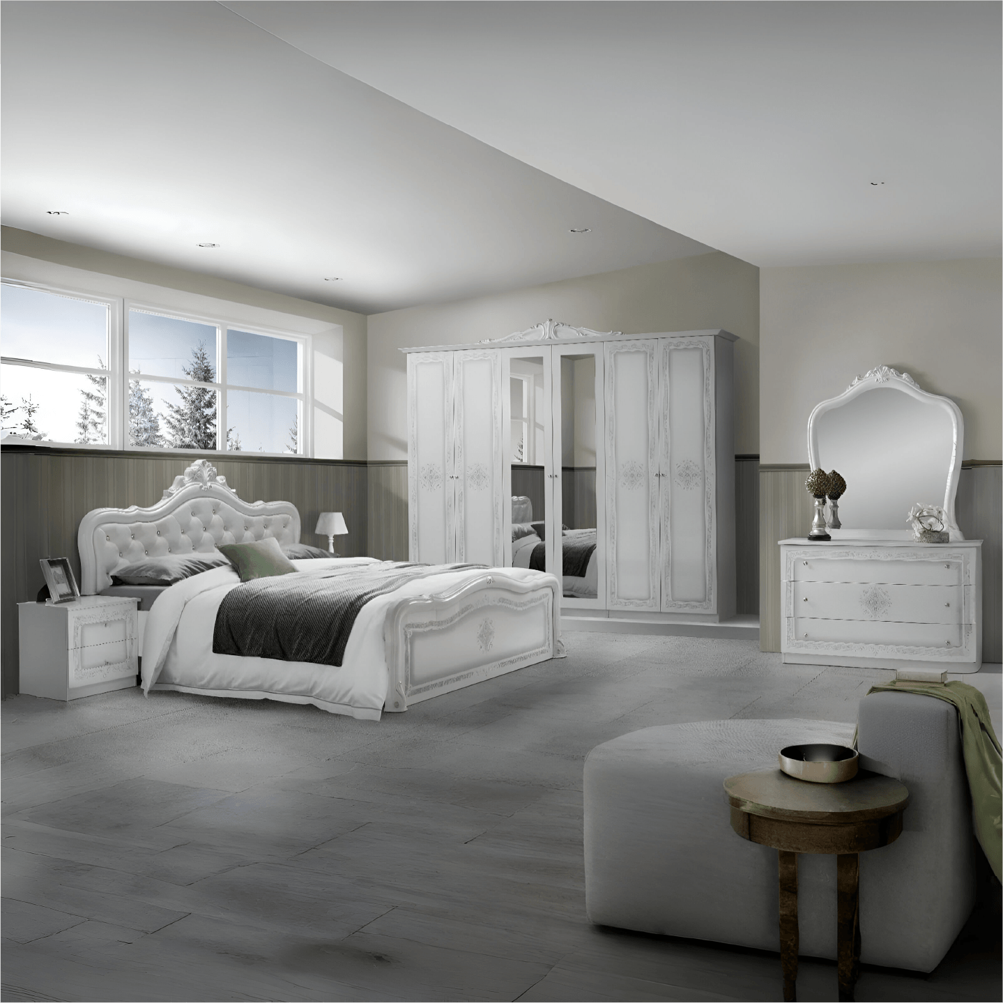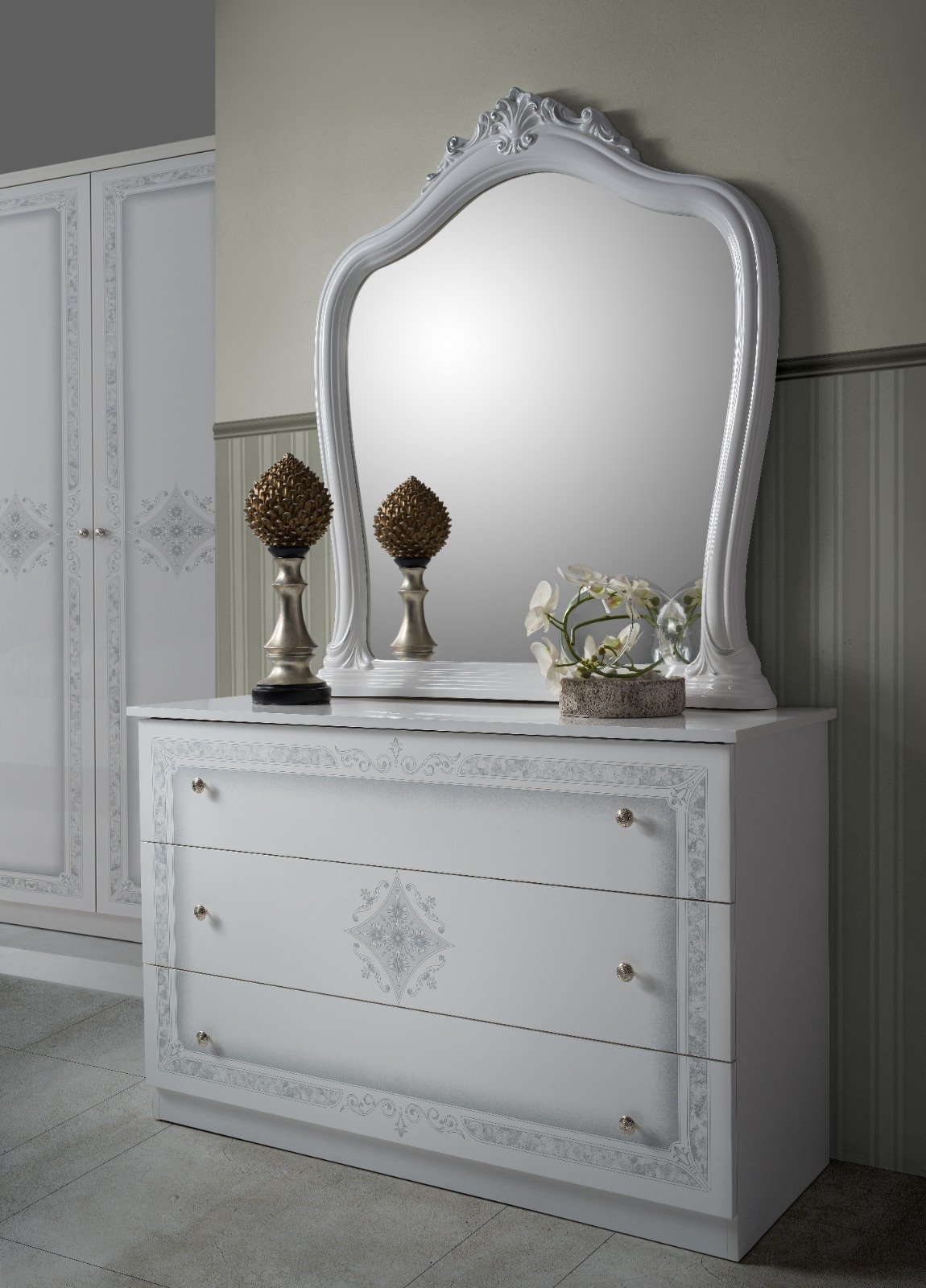 Luisa Italian High Gloss 6Doors bedroom Set (White-Silver)