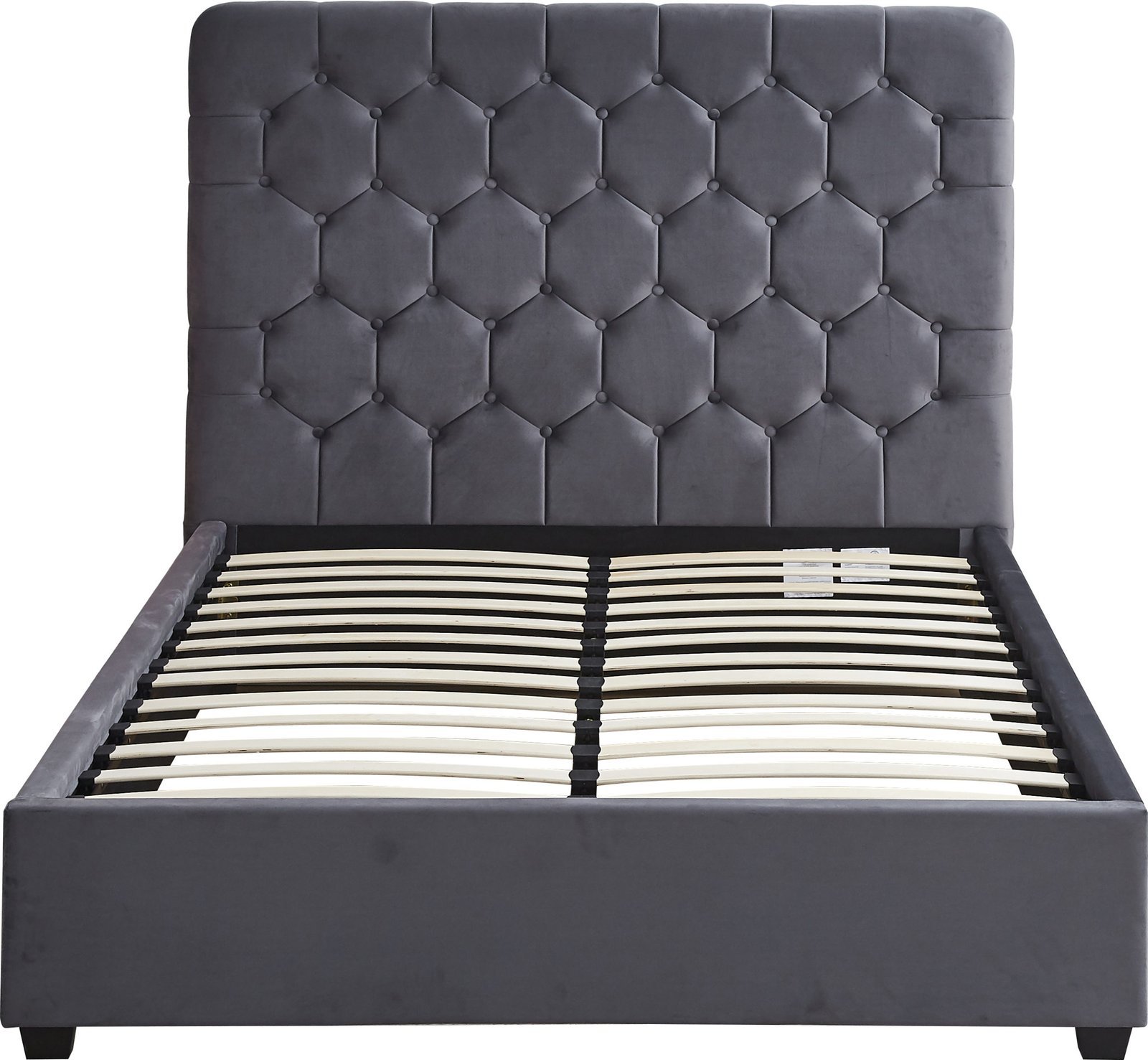 VELVET FABRIC, FOAM, PLYWOOD, METAL, LAMINATED SPRUNG SLATS, PLASTIC SLAT CAPS, PLASTIC FEET, NON-WOVEN