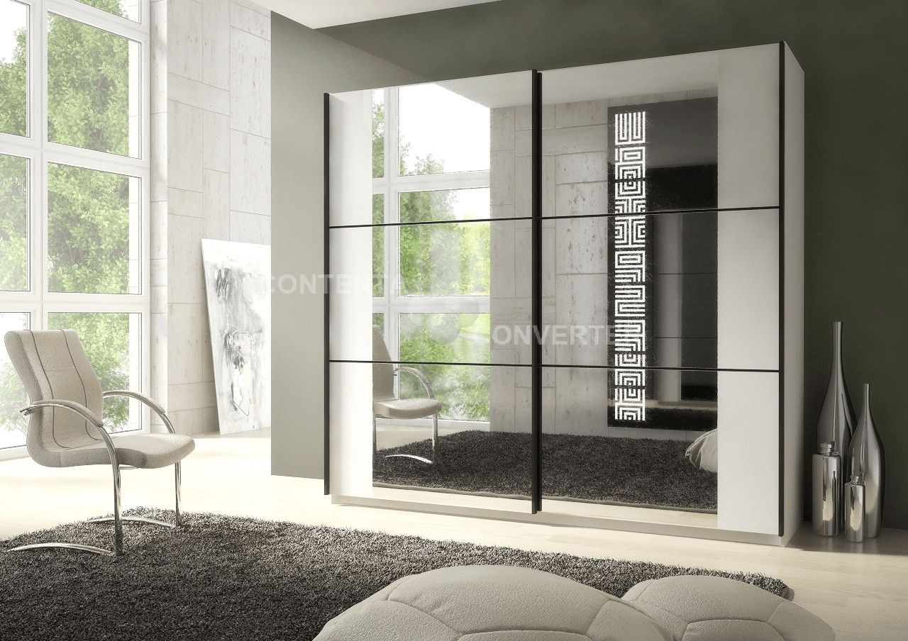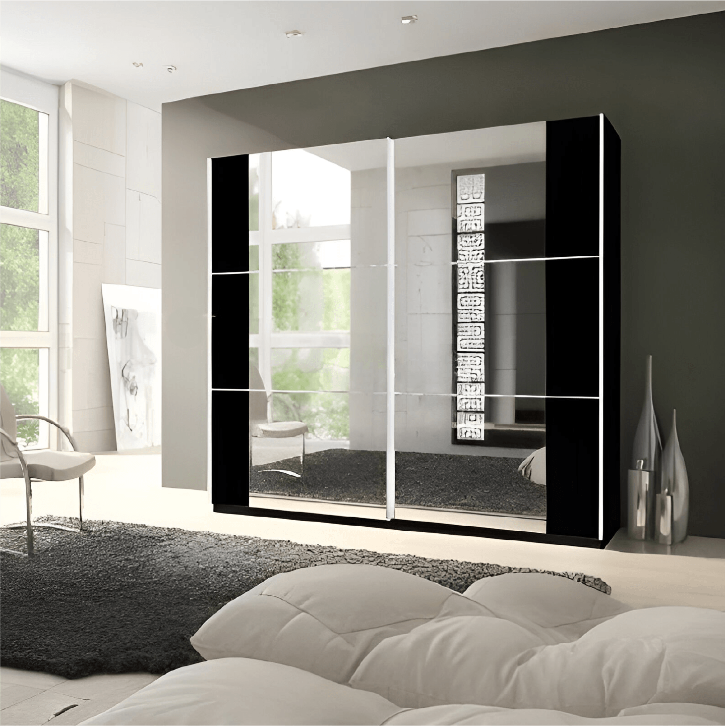 Memphis Large Sliding Mirrored Wardrobe Black/White