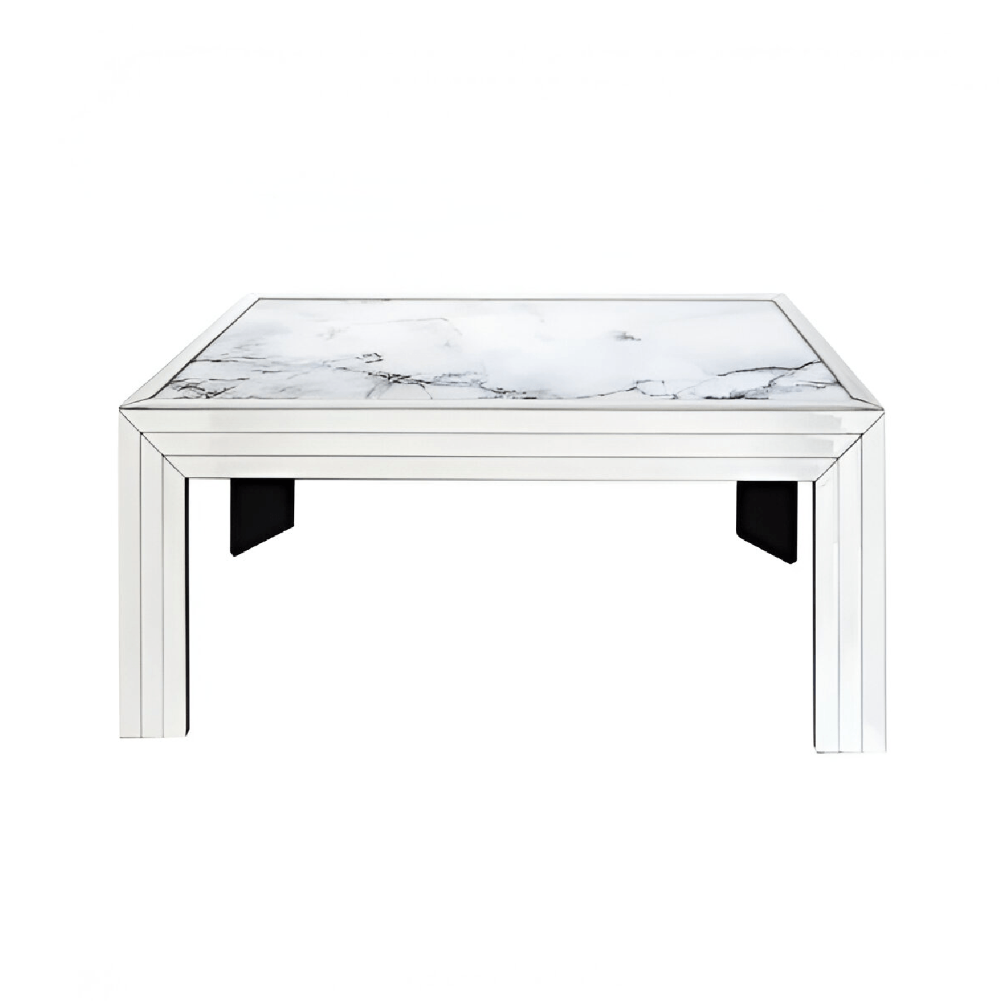 Simple, bold design. Each table features shiny mirror sides and legs, finished with a high gloss marble effect top.