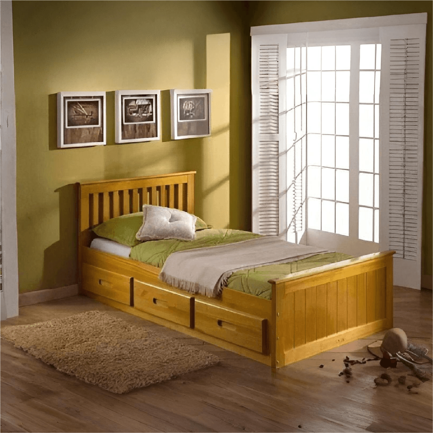 The Mission Storage Bed in Waxed gives you a traditional single bed with a slatted headboard and a strong, durable construction. The bed also boasts 3 drawers for useful storage that will help you to organise your bedroom. During assembly, you also have the option to install the drawers on either side of the bed to suit your preference.