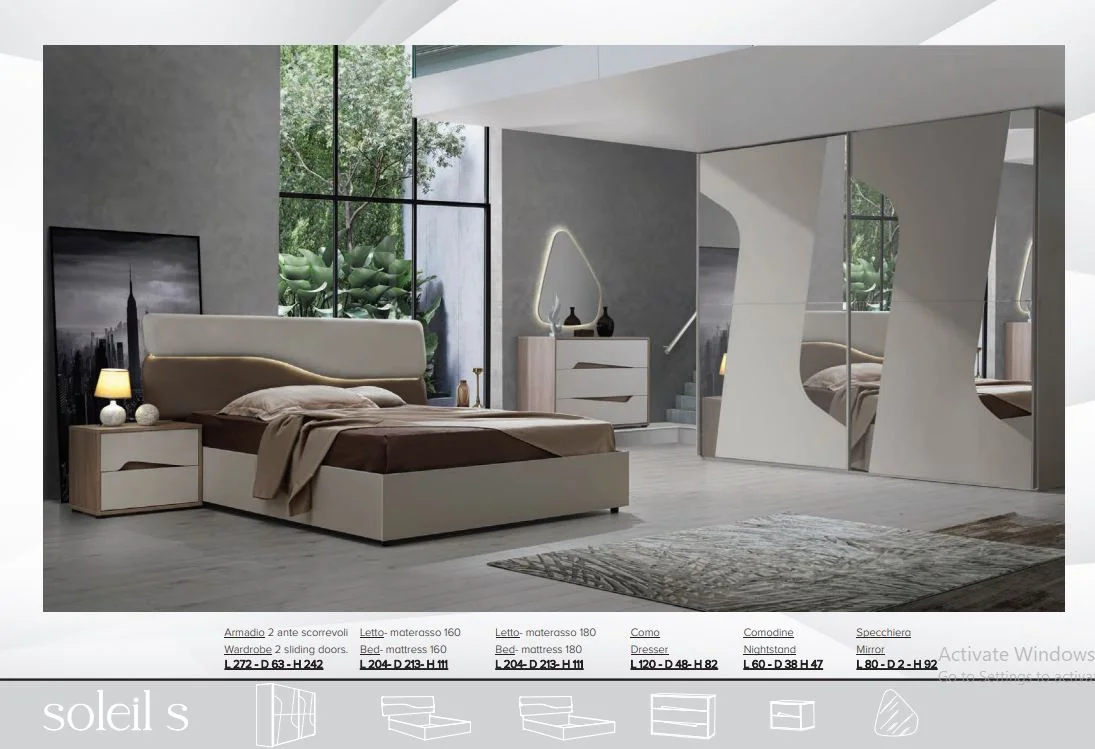 Modern Design Soleil Italian Large 6 Doors Wardrobe Bedroom Furniture Set
