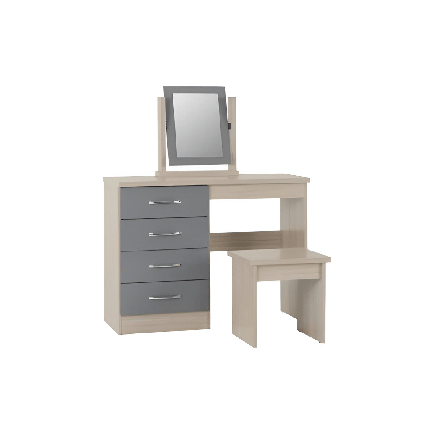Nevada 4 Drawer Dressing Table Set Grey Gloss/Light Oak Effect Veneer
