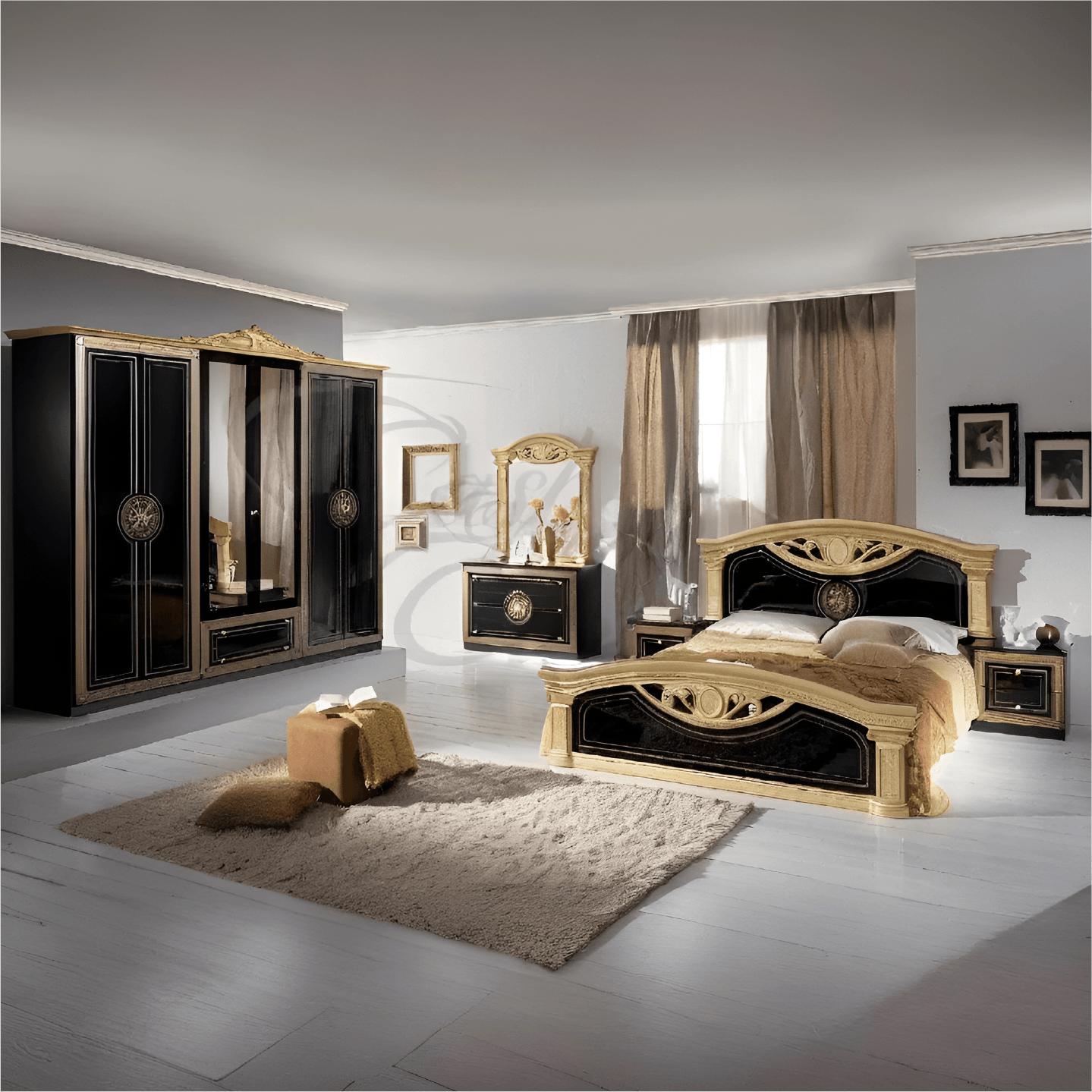 New Roma 4Doors Italian Black/Gold Bedroom Set