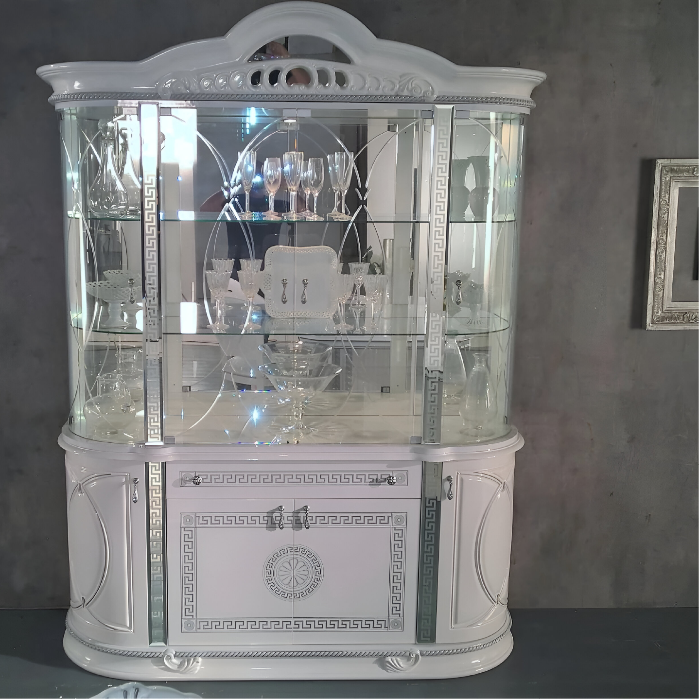 New Venus 4 Door Display Unit in High Gloss White & Silver Finish with Mirrored Detailing