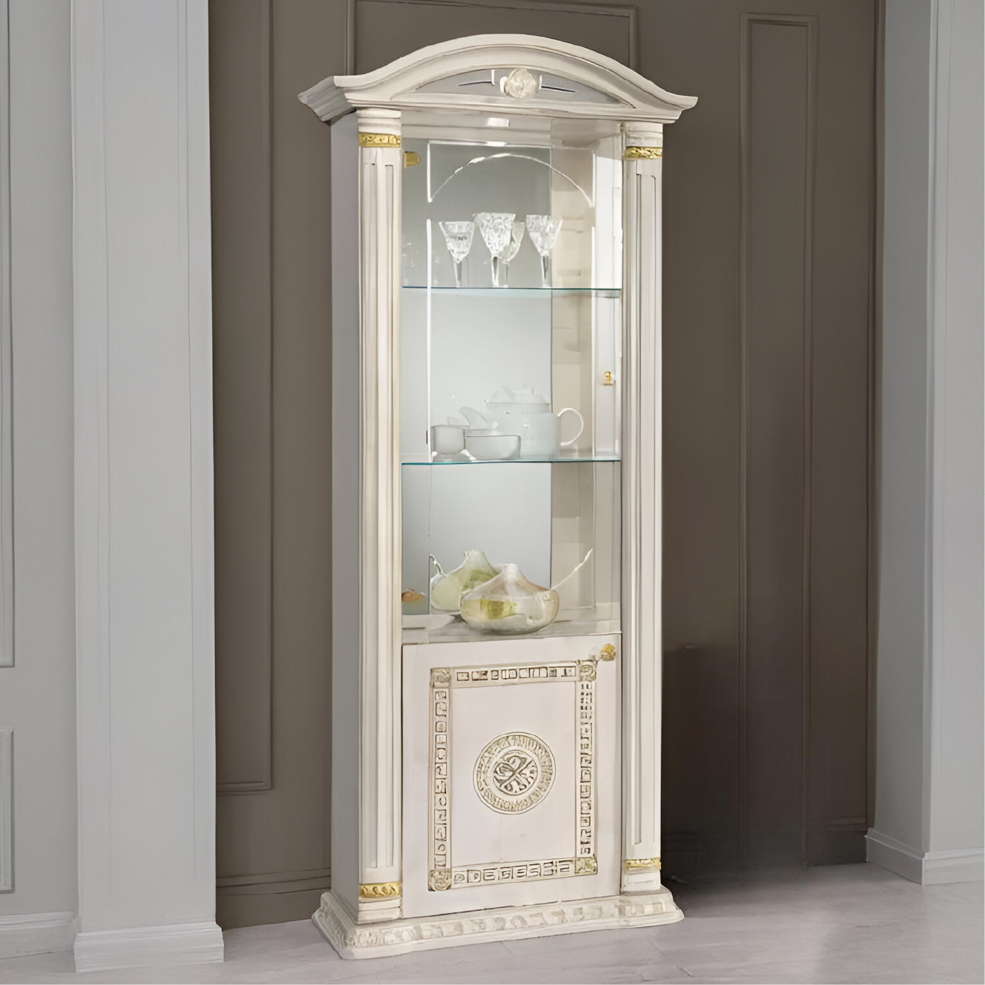 New Versace Italian Aurora Single Door Vitrine Display Unit Beige and Gold H2O Design