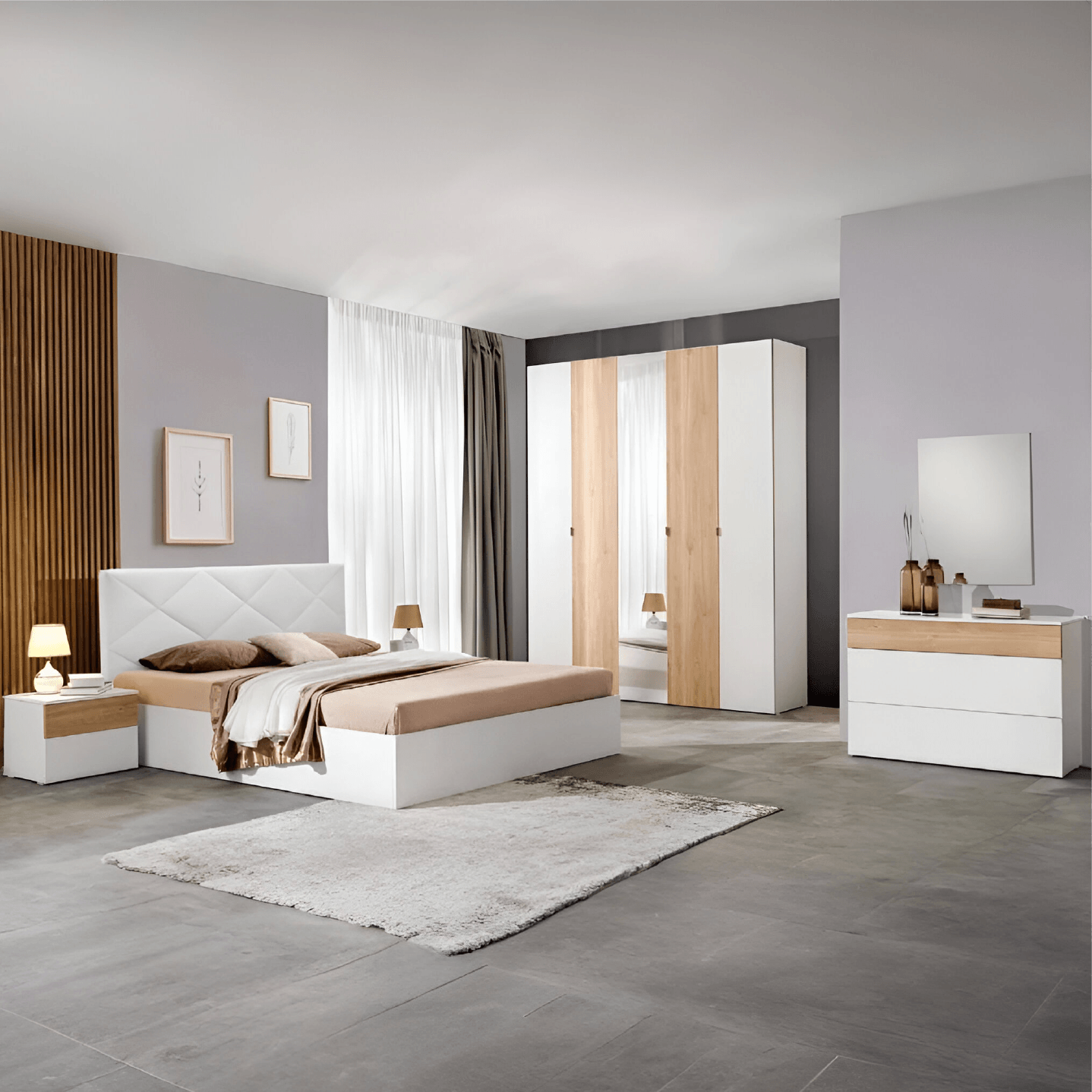 Are you going to try any home décor items? The Cash and Carry Beds Store offers the Patrizia New Bedroom Set at a fair price. It features a dresser, wardrobe, bed, nightstand, and mirror.