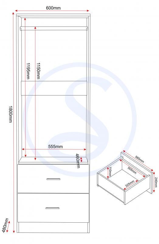BEDSIDE:DRAWER FRONT W 385 H 150