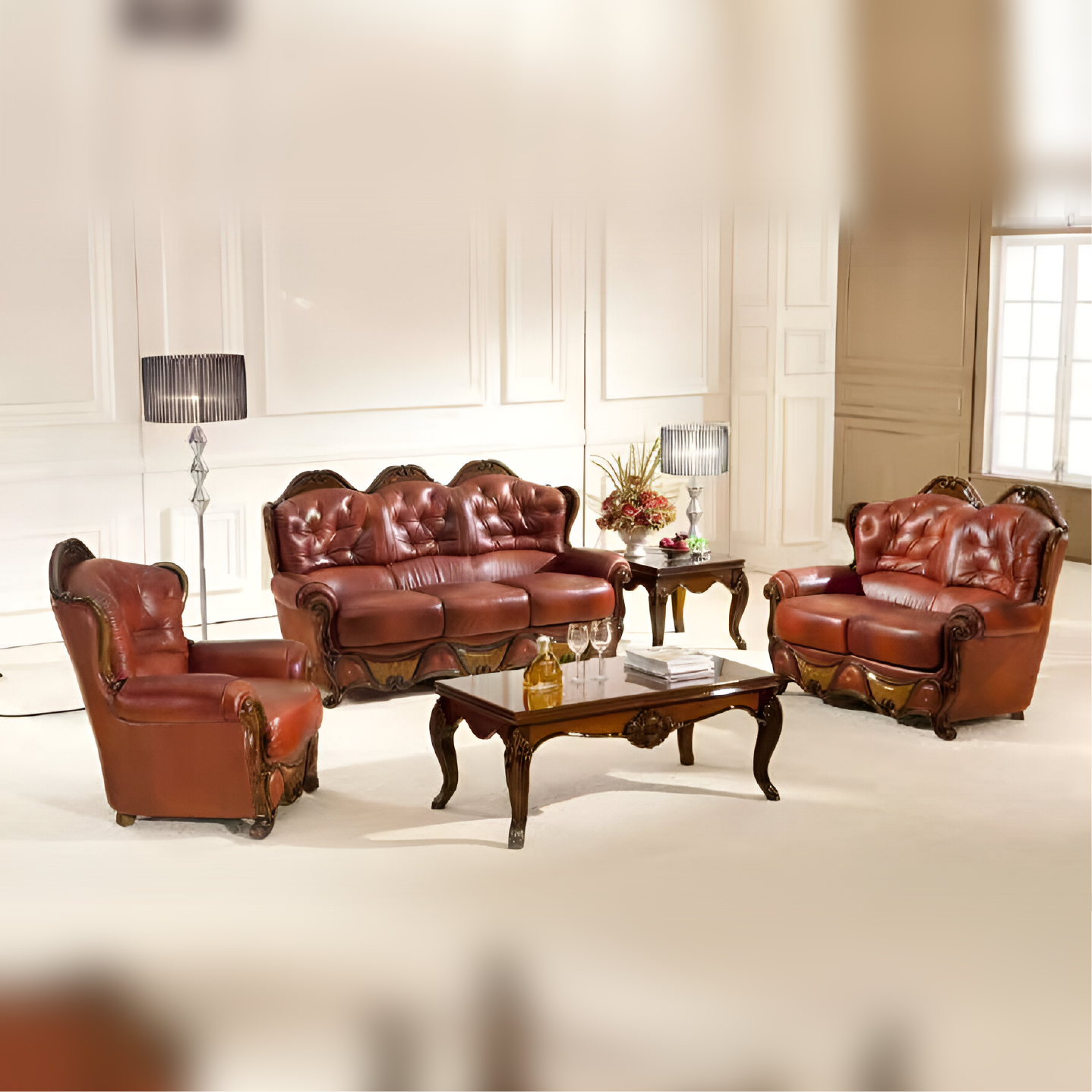Real Leather Sofa Set