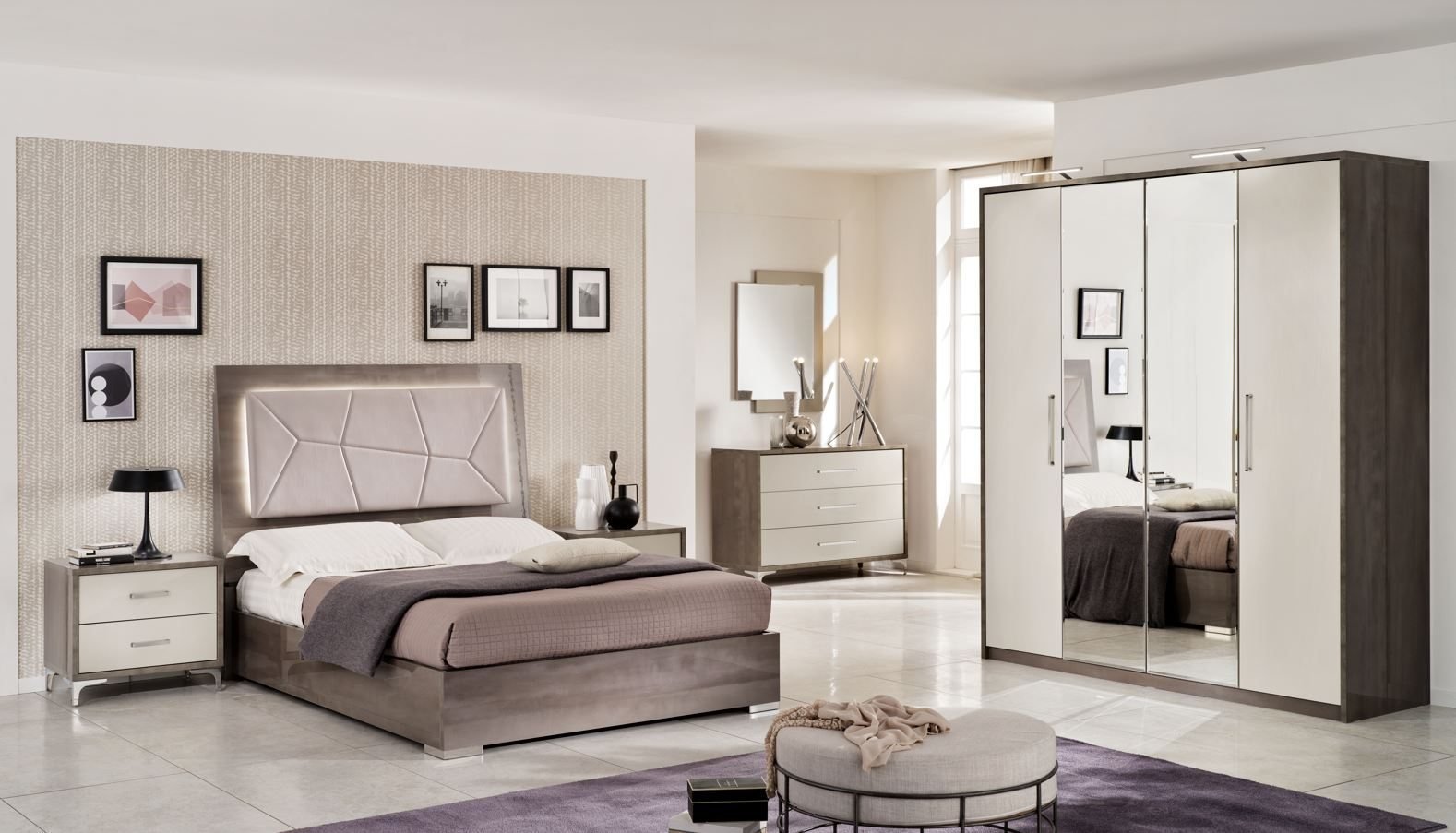 San Martino Modern Design Kristal Italian 4 Door Wardrobe LED Bedroom Set