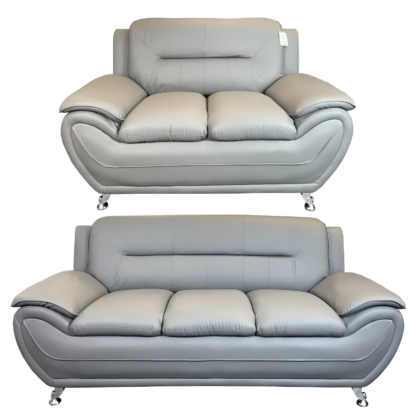 SHIRAZ 3+2 FAUX LEATHER SOFA SET – GREY