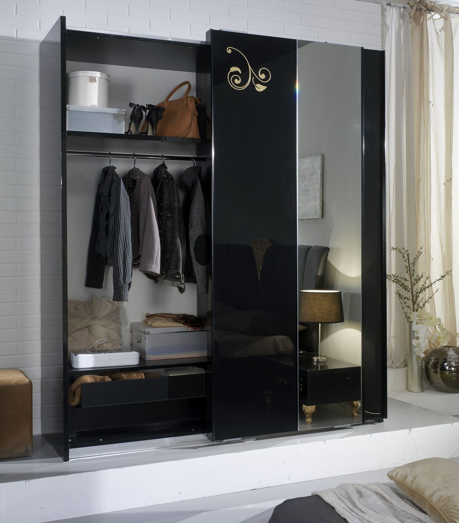 Sofia Black and Gold Italian Bedroom Set with 2 or 3 Door Sliding Wardrobe Ben Company