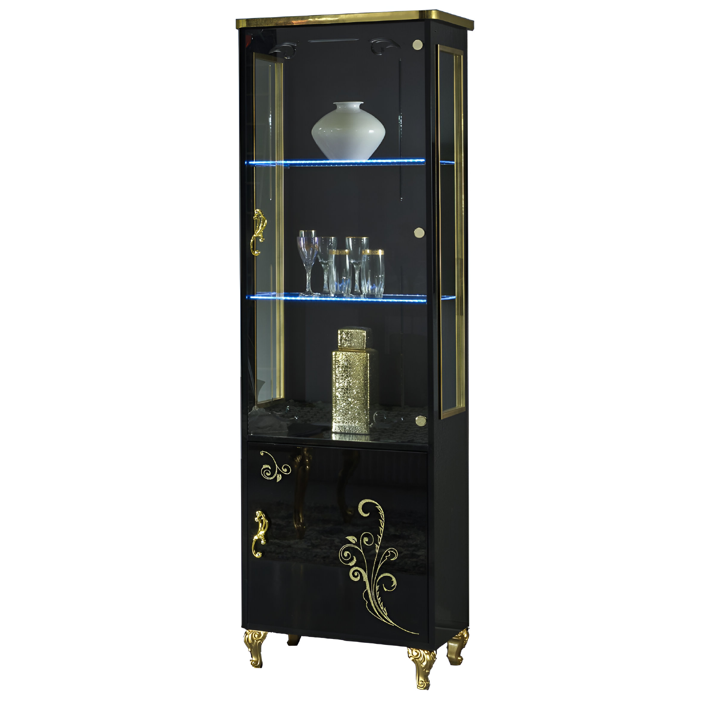 Sofia Italian 1 Door Display Cabinet Black and Gold Ben Company