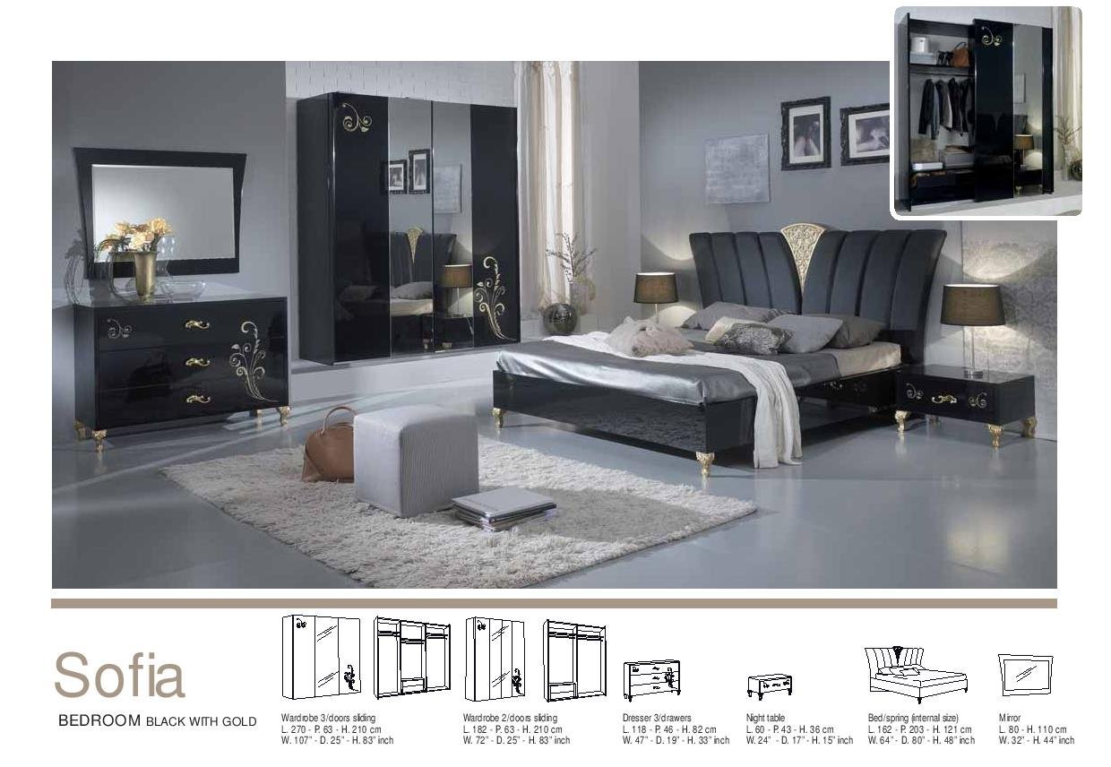 - Sofia Italian Bedroom Set Black and Gold with 2 Door Sliding Wardrobe Ben Company