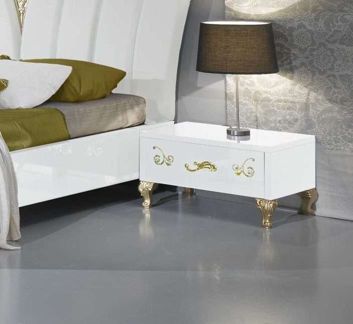 Sofia Bedroom Set offers a stylish look for bedroom which would sure be the centre piece of any interior. This Bedroom Set including 160cm bed frame, 2 night tables, dresser and mirror all these piece made of rich white high gloss finish with glittered gold decorations and golden handle will leave a lasting impression in your home for years to come. Italian furniture designers have long been known to combine elegant design with excellent construction quality to provide furniture which both looks good and lasts.