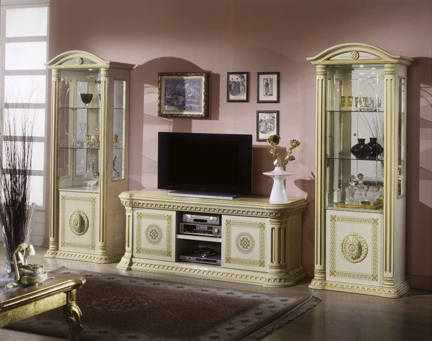 The Italian Versace Design “Rosella” Large Plasma TV Cabinet Beige / Gold