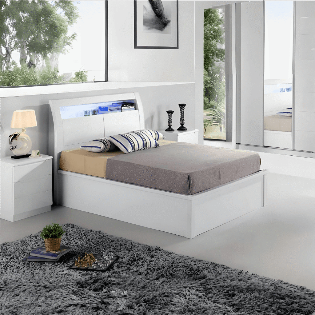 Rugby Ottoman-Storage High Glossy Double (4.6”) Bed Frame (New LED Lights) : £699 his modern Rugby High Gloss Storage Bed